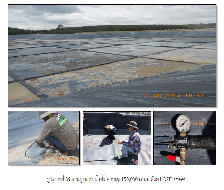 เนื่องจากมีข้อกฎหมายทางด้านสิ่งแวดล้อมกำหนดว่าน้ำเสียที่ผ่านการบำบัดแล้ว ไม่สามารถปล่อยทิ้งลงสู่แหล่งน้ำสาธารณะโดยตรงได้ นิคมอุสาหกรรมทุกแห่งจึงต้องก่อสร้างบ่อพักน้ำทิ้ง (Holding pond) ที่มีขนาดเพียงพอต่อการกักเก็บน้ำไว้ระบายในฤดูฝน และทางบริษัทฯ ได้ทำงานกับนิคมอุตสาหกรรมเหมราชมาอย่างยาวนาน มีประสบการณ์ด้านการก่อสร้างบ่อพักน้ำโดยการปูแผ่นพลาสติกกันซึม HDPE sheet กว่า 10 ปี จนเป็นผู้เชี่ยวชาญทางด้านนี้โดยตรง