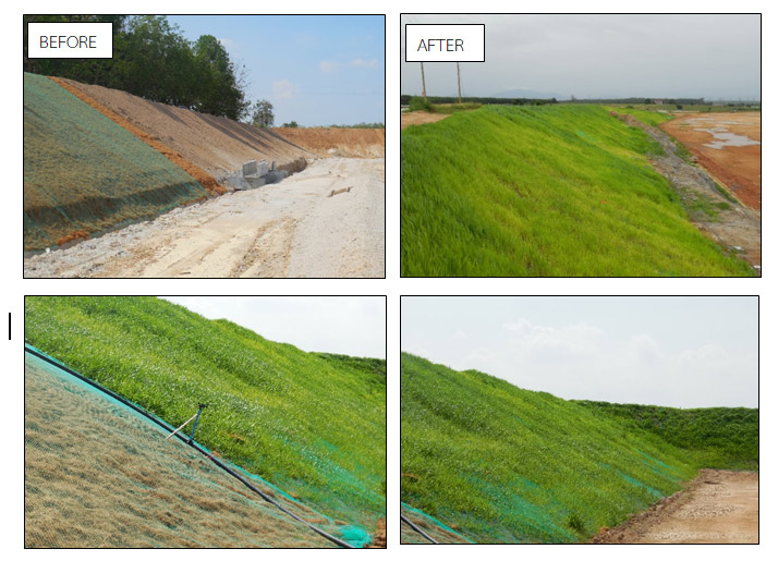 ในการพัฒนาที่ดินเพื่อทำนิคมอุตสาหกรรม โดยเฉพาะในพื้นที่ภาคตะวันออก ที่มีสภาพภูมิประเทศสูงต่ำสลับกันไป จึงจำเป็นที่จะต้องตัดถมดินในพื้นที่โครงการให้เป็นที่ราบรายแปลงเพื่อให้สามารถสร้างอาคารโรงงานในแปลงที่ดินได้อย่างเหมาะสม ในการออกแบบการปรับระดับดิน (Land grading) ทำให้เกิดความลาดเอียง (Slope) บริเวณท้ายแปลงที่ดิน ซึ่งหากไม่ป้องกันการกัดเซาะผิวหน้าจะเกิดความเสียหายกับเชิงลาด