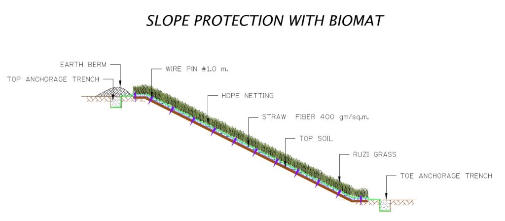 ในการพัฒนาที่ดินเพื่อทำนิคมอุตสาหกรรม โดยเฉพาะในพื้นที่ภาคตะวันออก ที่มีสภาพภูมิประเทศสูงต่ำสลับกันไป จึงจำเป็นที่จะต้องตัดถมดินในพื้นที่โครงการให้เป็นที่ราบรายแปลงเพื่อให้สามารถสร้างอาคารโรงงานในแปลงที่ดินได้อย่างเหมาะสม ในการออกแบบการปรับระดับดิน (Land grading) ทำให้เกิดความลาดเอียง (Slope) บริเวณท้ายแปลงที่ดิน ซึ่งหากไม่ป้องกันการกัดเซาะผิวหน้าจะเกิดความเสียหายกับเชิงลาด